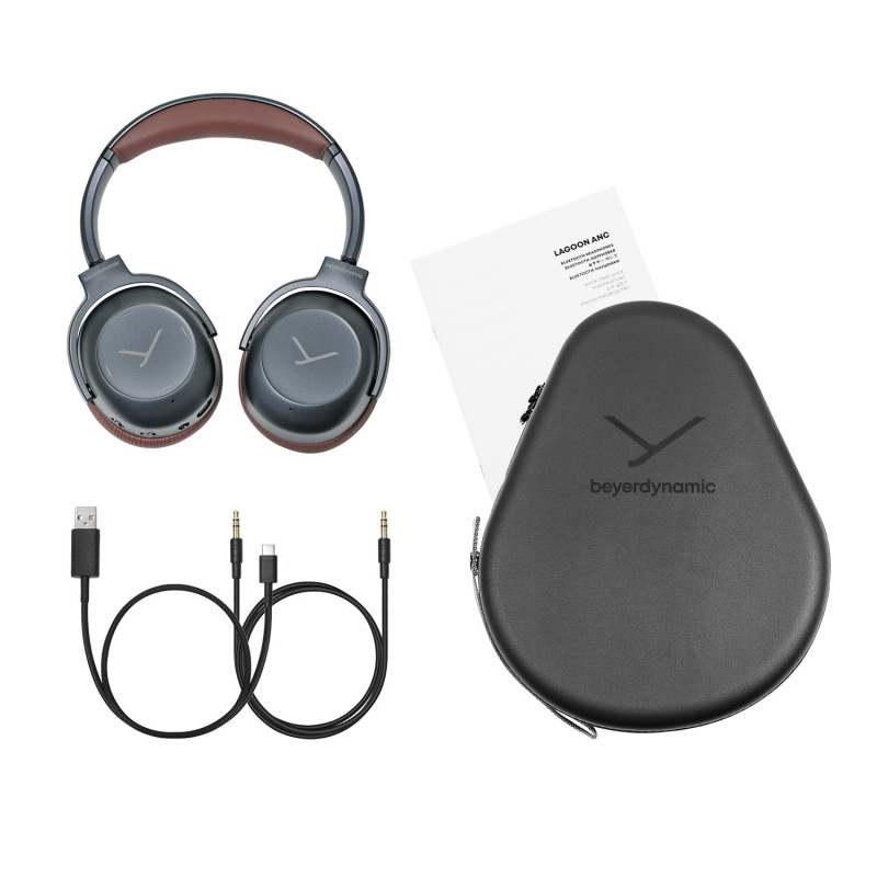 BEYERDYNAMIC LAGOON ANC EXPLORER - навушники, дизайн: повнорозмірний, призначення: для смартфона, для подорожей, тип підключення: бездротовий, тип випромінювача: динамічний, акустичний дизайн: закритий, активне шумозаглушення (А КК), пульт дистанційного керування, регулятор гучності, сумісність Apple, сумісність з Android, світлодіодні світильники, складна конструкція, знімний кабель, тип кріплення: наголов'я, діапазон частот, Гц: 10-30000, чутливість, БД: 91, максимальна потужність, мВт: 40, значення опору, Ом: 20, штекер: міні-роз'єм (3.5 мм).