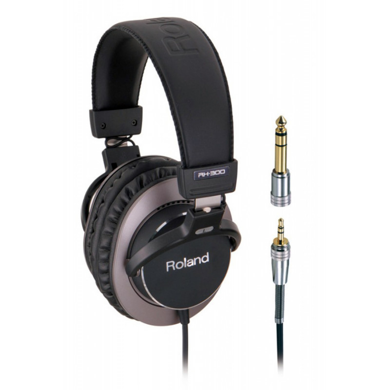 ROLAND RH300 - стерео навушники, динамічний, закритий тип, водій: 45мм з неодимним магнітом, чутливість: 101 дБ/мВт, максимальний вхід: 1600 мВт (1 кГц), діапазон відтворюваних частот: 10 - 25000 Гц, сполучний кабель: прямий, 3,4 м, роз'єм: 1/8" стереодинаміка q 1/4" адаптер.