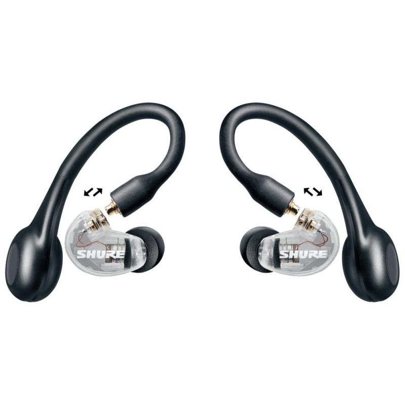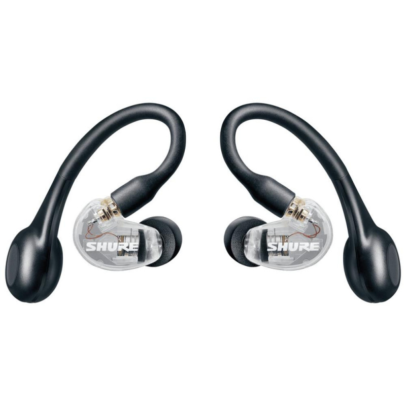 SHURE SE215-CL-TW1-EFS - внутрішньокауні навушники, Тип зв'язку: бездротовий Bluetooth, Тип випромінювання: динамічний, кількість драйверів: 1, частотний діапазон: 21 - 17500 Гц, матеріал: пластик, силікон, роз'єми: 3.5 мм, опір: 17 Ом, чутливість навушників: 107 дБ, Bluetooth: 5.0, термін служби акумулятора: 8 годин, мікрофон: вбудований, колір: прозора вага: 21 г.