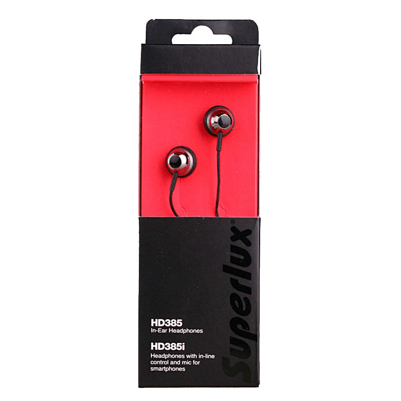 SUPERLUX HD-385 - вакуумні навушники, закритого типу, магніт: неодимгія, імподанс: 16 Ом, частотний діапазон: 20 Гц - 20 кГц, чутливість: 103 дБ, діафрагма: q13 мм, кабель: 1,2 м, роз'єми: 1/8"TRS позолочені, вага: 16 г, виробництво: Китай: