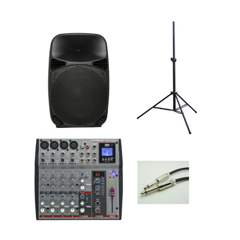 CLARITY MCS-4 (2X MAX15MH-S-1X PHONIC AM 440 DP'2X MOGAMI SI5 - звуковий комплект, складається з: активних акустичних систем Clarity MAX15MH-S (2 штуки), кабелів Mogami SI-5 (2 шт), змішувальної консолі з Phonic AM 44DP0, 2 стійок BOX-3.