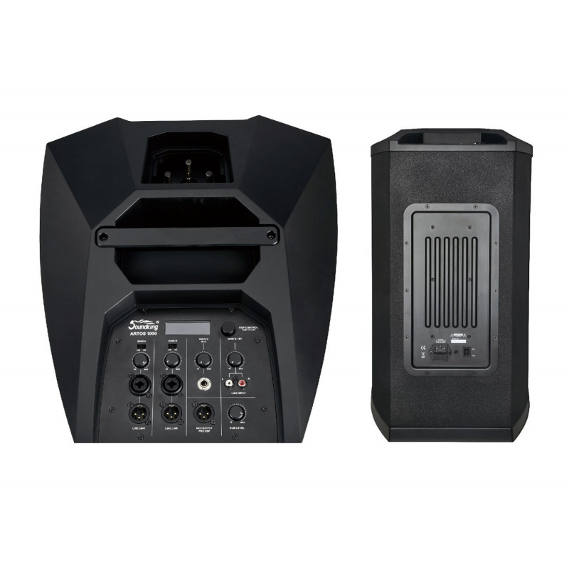 SOUNDKING ARTOS1000 оснащений 4-канальний мікшер з функціональною обробкою DSP і LCD дисплеєм, який відображає параметри і стан системи. Щоб полегшити налаштування, користувач може зберегти та завантажити змінені параметри в пам'яті пристрою. Підтримка протоколу Bluetooth дозволяє підключати сучасні цифрові джерела аудіо, від смартфона до ноутбука. Більш того, при необхідності ви можете об'єднати два ARTOS 1000 через Bluetooth в єдину стереосистему для ще більш потужного і об'ємного звуку - все без проводів, натиснувши пару кнопок.