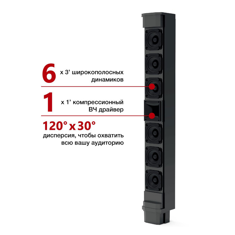 Потужність: Лінійний масив: 180 Вт (RMS), сабвуфер: 250 Вт (RMS)
