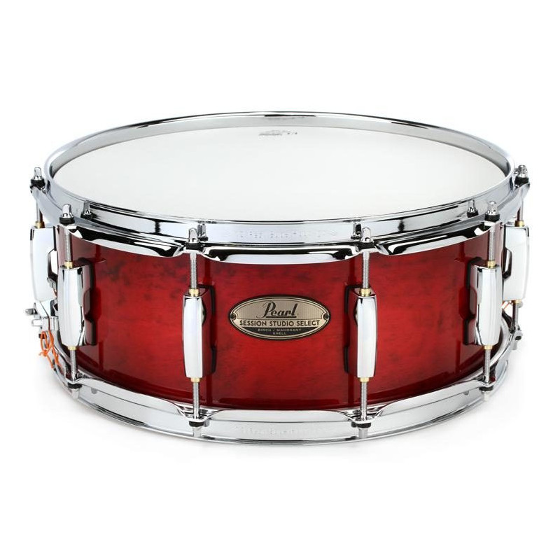 PEARL STS-1465S/C315 — барабан серії Session Studio Select, 14'x6,5'. 6 шарів берези і африканського червоного дерева (товщина корпусу - 5,4 мм), штамповані обручі SuperHoop II, 10 лагів CL-65, болти Т-062, ситечко SR-017, субстратор S-022N. Колір: Античний малиновий сплеск.