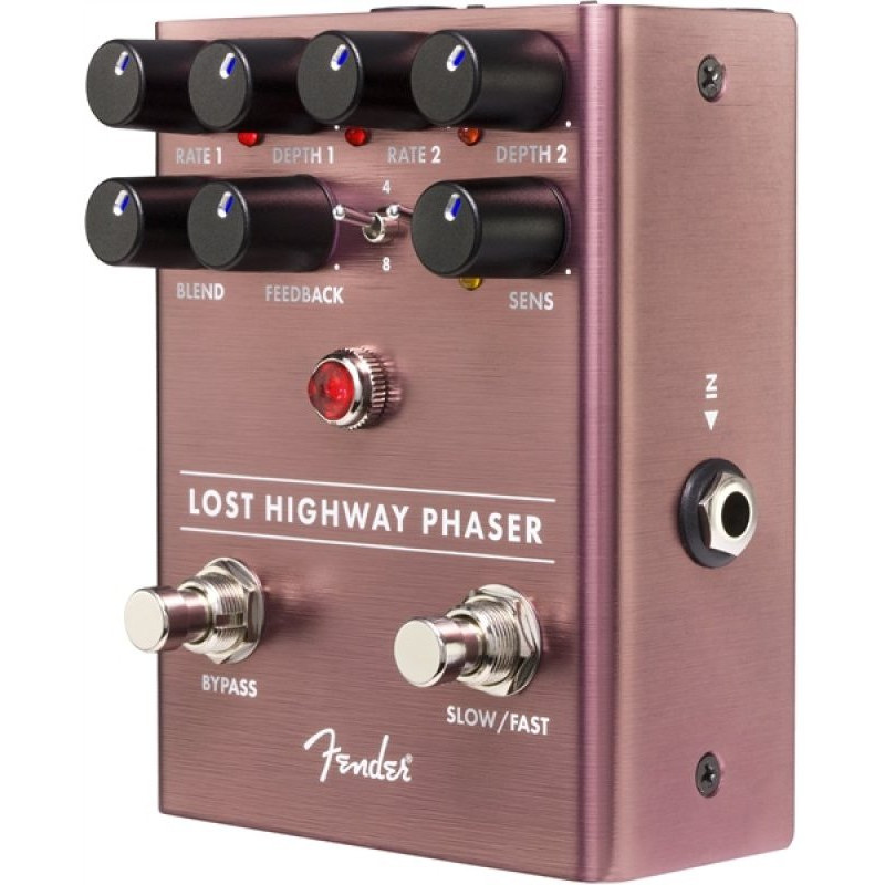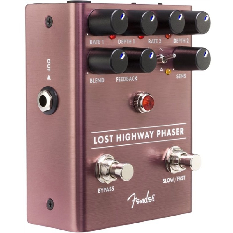 Fender Lost Highway Phaser - педаль фадера, ефект, який додає звукового ефекту руху. Швидка і повільна швидкість перемикання педалей - кожна зі своїми незалежними елементами управління швидкістю і глибиною - дозволяє легко перемикатися між повільними фазами зсувів і швидкою і деформованою модуляцією. Хвильовий тумблер вибирає форми сичуга і трикутної хвилі, в той час як перемикання 4- і 8-швидкісної фази дозволяє легко додати додаткового резонансу до мухи. Регулятор чутливості дозволяє змінювати частоту модуляції в залежності від динаміки геймплея.