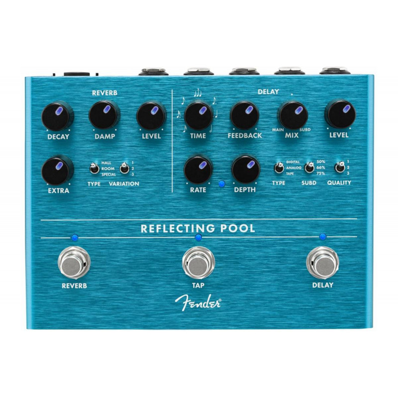 ПЕДАЛЬ FENDER, ЩО ВІДОБРАЖАЄ ЗАТРИМКУ / РЕВЕРАНС - Індивідуальне перемикання педалей ефекту затримки-реверберації між режимами Dilei та Reverb.