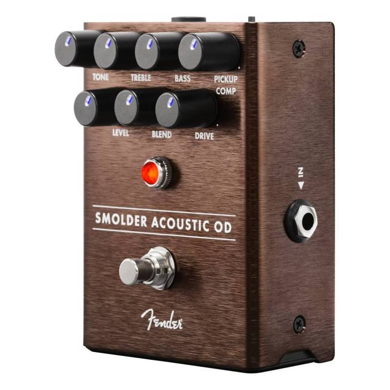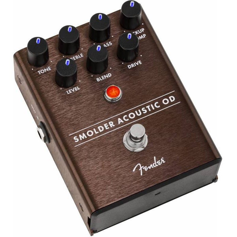 FENDER PEDAL SMOLDER ACOUSTIC OVERDRIVE - ефекти педалі для електроакустичної гітари, ефект: Overdrive, управління: True Bypass, Tone, Tremble, Bass, Pickup Comp, Level, Blend, Drive, входи: 1 х 1/4" (інструмент), виходи: 1 х 1/4", 3-смуговий еквалайзер, корпус: анодований алюміній, СВІТЛОДІОДНЕ освітлення, гарантія: 12 місяців, оздоблення: педаль ефекту, керівництво користувача, розмір виробу (без упаковки): 73,66 х 124,46 х 137,16 мм, вага без упаковки (нетто): 0,77 кг, блок живлення 9 B/Батарея 9 В - купується окремо.