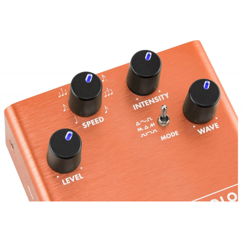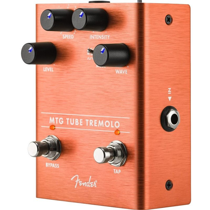Назва "Fender" є синонімом справжнього тону лампи. Педаль FENDER MTG TUBE TREMOLO ставить гіпнотичний звук, характерний для вінтажних підсилювачів, в ефекти педалі, яка заснована на американській лампі preamp NOS 6205. Педаль оснащена контролерами рівня, інтенсивності та швидкості, генератором хвиль 3 та спеціальним перемикачем Tap, який забезпечує доступ до різноманітних нотаток.