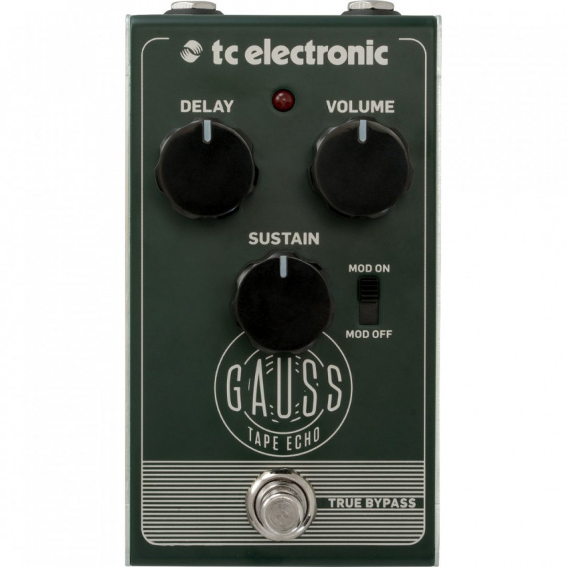 TC Electronic Gauss Tape Echo - педаль ефектів для електрогітари, відлуння стрічки ефекту, справжній обхід, затримка управління, гучність, підтримка, перемикач модів, металевий корпус, що живиться від джерела живлення 9B або акумулятора.