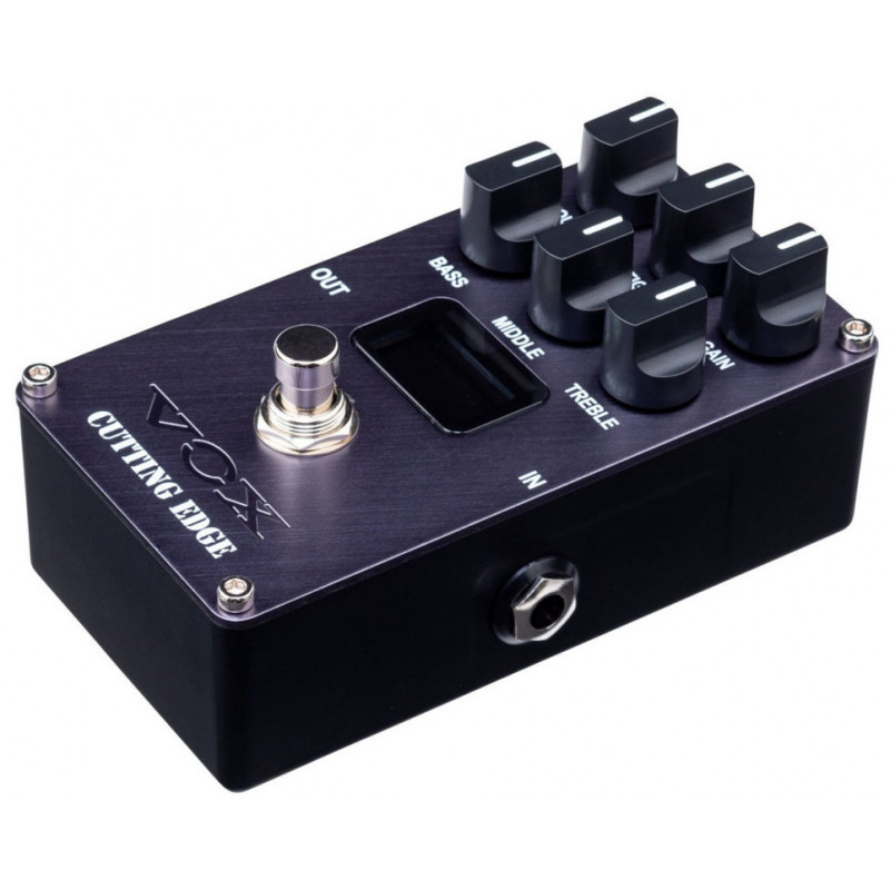Педаль VOX CUTTING EDGE Effects забезпечує високо рівні звуки п'явок, необхідні для сучасного металу. Він має 4-тонові контролери, які забезпечують різноманітні виразні риси, від щільних і кранових тонів для чистих рифів до товстих звуків, ідеально підходить для соло.
