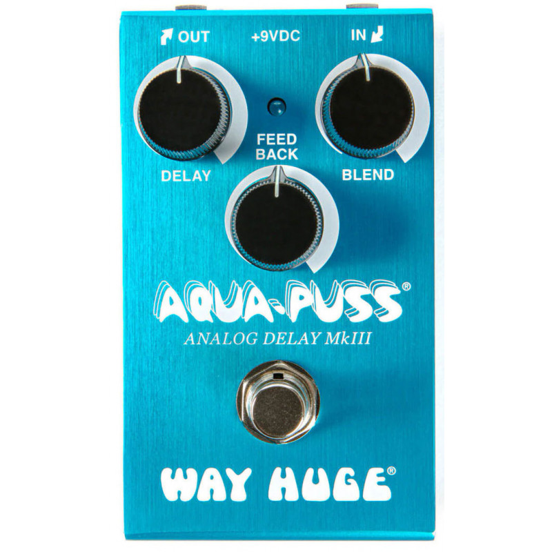 WAY HUGE WM71 Smalls Aqua-Puss Аналогова затримка - Ефекти педалі для електрогітари, ефект: затримка (затримка), управління: "Затримка" - час затримки, "Зворотній зв'язок" - зворотній зв'язок, "Blend" - суміш чистих і оброблених сигналів, потужність: акумулятор 9B або адаптер Dunlop ECB003 (опціонально), гарантія: 12 місяців.