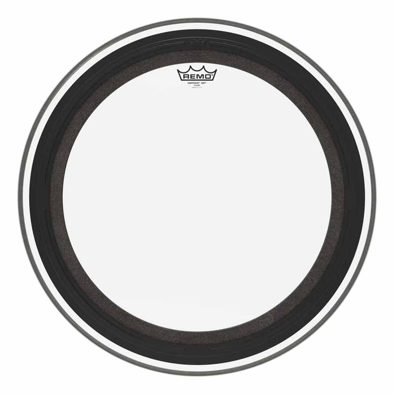 REMO Emperor SMT Clear 22" (BB-1322-00-SMT) - прозорий пластик для бас-бочки з попередньо приглушенною конструкцією та технологією Sub Muffl®. Складається з 2 шарів прозорої плівки товщиною 7 і 5 міліметрів та зовнішнього демпфуючого профілю з вільно плаваючою акустичною піною. Це дозволяє мембрані та корпусу барабана зберегти повні звукові характеристики з додатковою атакою та низькими частотами.