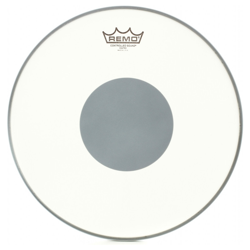 REMO CS 14" ПОКРИТА ЧОРНА КРАПКА - верх, одношаровий пластик для барабана, серія: Контрольований звук, діаметр: 14", спрей: так, армований центр: так, колір: білий, товщина: 10 міль, 5 міль посилений центр, вага: 0,2 кг.