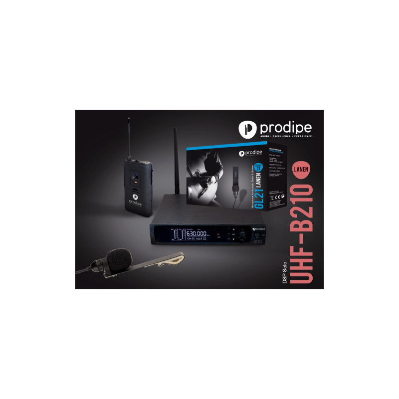 PRODIPE B210 DSP SOLO GL21 - цифрова радіо система, інструментальна, частотний діапазон: УВЧ (ВЧ), Технологія цифрового сигнального процесора, кількість антен на приймачі: 1, дальність польоту: до 60 м, кількість мікрофонів: 1, тип мікрофона: конденсатор, спосіб фіксації мікрофона: на приладі, схема напрямку: кардіоїд, роз'єми: баланс XLR, незбалансований ТРС (6,3 мм), співвідношення сигнал/шум, дБ: більше 85 дБ, перемикач: є, розрахований на гітару, діапазон 60 м, набір: мікрофон, приймач, передавач, гарантія: 12 місяців