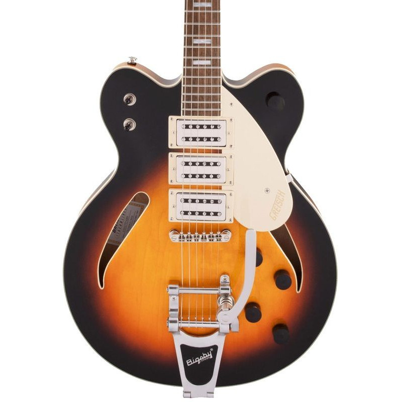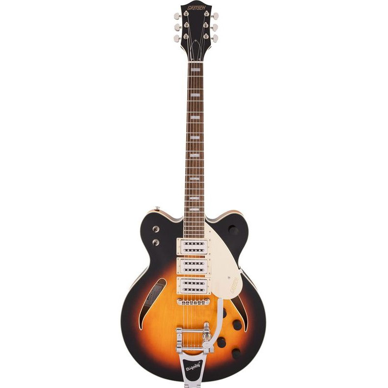 GRETSCH G2627T STREAMLINER CB 3 ПІКАПИ FSR ABB - напівакустична електрогітара, Deca - ламінований кленовий центр. Ялинний блок, гриф - лорел, профіль гриф - тонкий U, датчики - 3 Broad'Tron, Bigsby, колір - санберст.