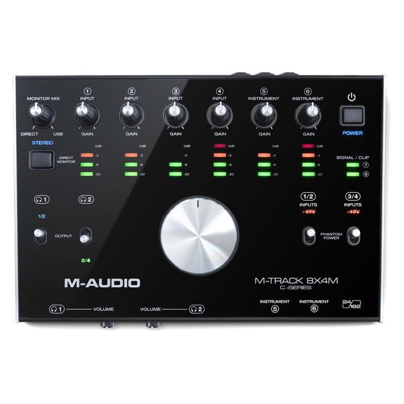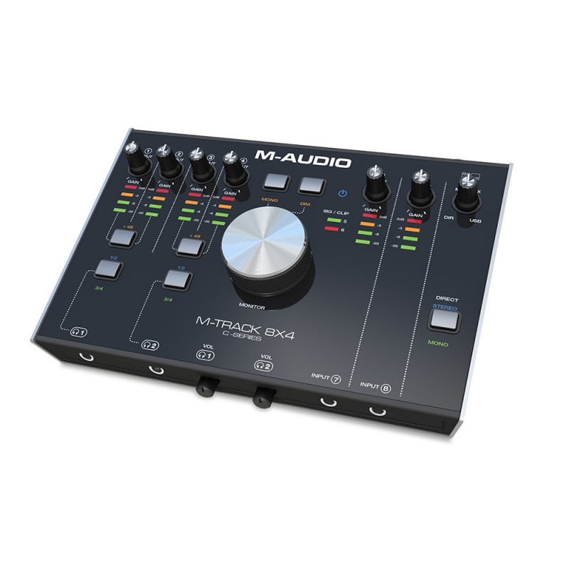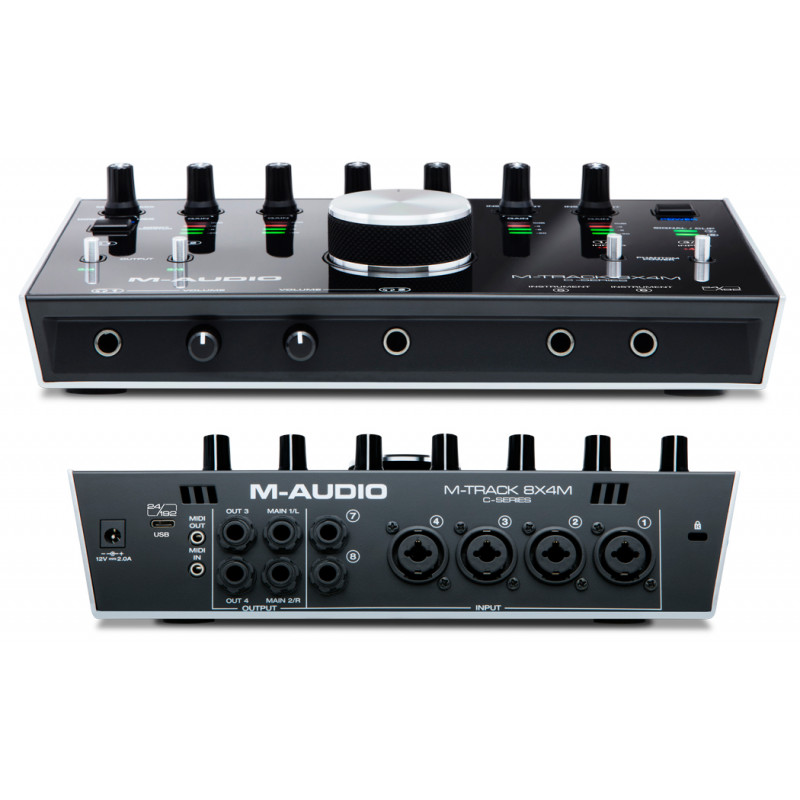 M-AUDIO M-TRACK 8X4M - це високошвидкісний 24-бітний аудіо інтерфейс з 4 входами, 2 виходами, 2 виходами навушників і наявністю якісної попередньої характеристики і винятковою продуктивністю введення звуку. Цей інтерфейс ідеально підходить для моніторингу та запису в якості студії, два комбінованих XLR / TRS введення. Цей високошвидкісний аудіо інтерфейс USB є ідеальним рішенням для моніторингу mix та запису з нульовою затримкою.