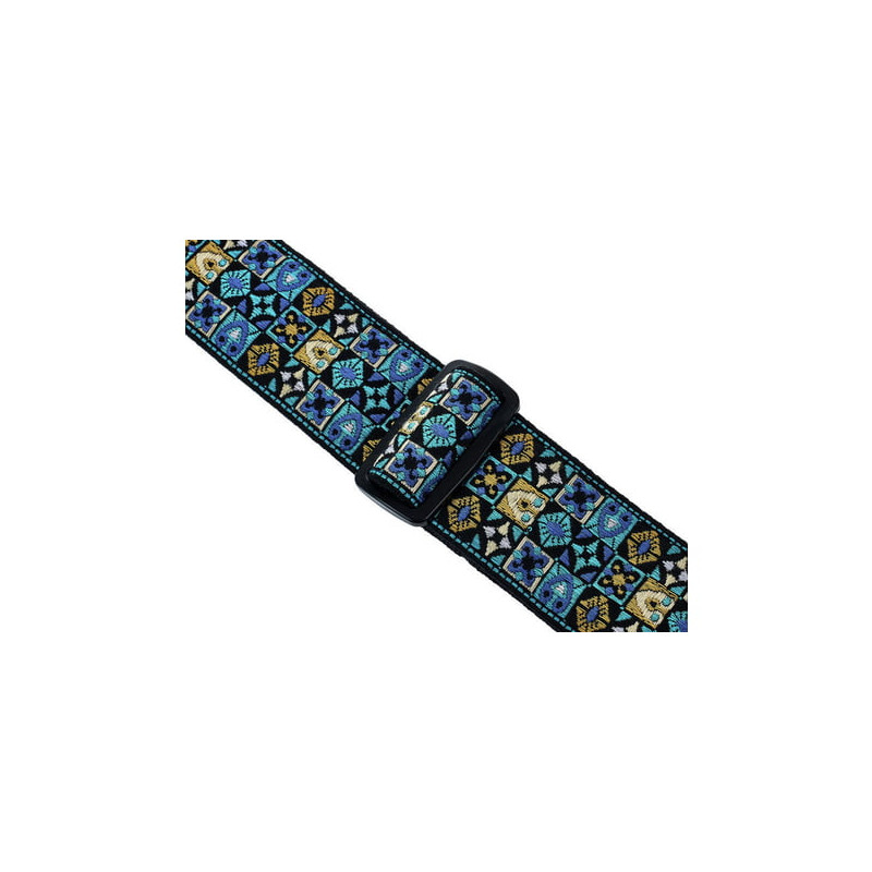 Старовинний тканий гітарний пояс FENDER FESTIVAL STRAP, BLUE може похвалитися як декоративним мозаїчним дизайном, так і особливостями, які зберігають ваш інструмент недоторканим під час виступів. Колірні схеми повторюють ремені, які використовуються відомими музикантами Fender.