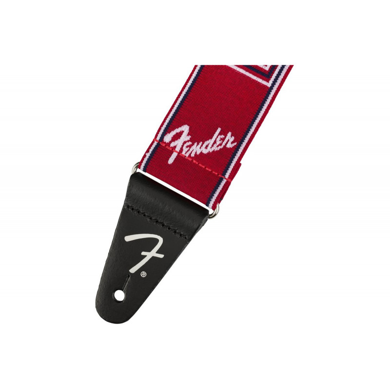 FENDER 2" БЕЗ ЗВАЖЕНИЙ МОНОГРАМОВАНИЙ РЕМІНЕЦЬ RED/WHITE/BLUE - гітарний ремінь, матеріал: поліестер, колір: різнокольоровий, ширина: 50,8 мм, довжина: 1117,6 - 1333,5 мм, червоний, білий і синій.