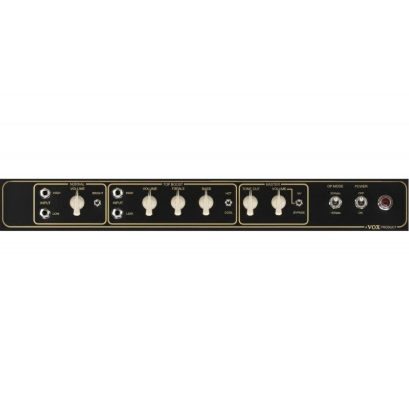VOX AC15HW1X - комбо підсилювач електрогітари, потужність: 15 Вт RMS на 8/16 Ом, комплект ламп: preamp: ECC83/12AX7 (x3), підсилювач потужності: EL84 (x2), випрямляч: ez81, динаміки: 12" Celestion Alnic Blue (x1); 16 Om, Чистий звуковий канал роз'ємів (NORMAL): ВИСОКИЙ (x1); LOW (x1), Роз'єми Top Boost: HIGH (x1); LOW (x1), роз'єм перемикача ніг, виходи: роз'єм зовнішньої акустичної системи, додатковий роз'єм акустичної системи, розміри (S x G x B) 610 x 260 x 550 мм, вага: 22,8 кг.