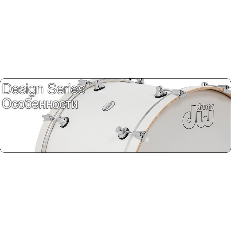 Спираючись на багаторічний досвід створення чудових барабанів, DW створила нову серію ударних блоків design Series®. Незважаючи на неймовірну доступність, це найсвініша барабанна майстерня! Від компактних лагів новітньої розробки mini Turret lug до харизматичного американського пластмаси Remo USA® made Suede® і плоского сріблясто-білого логотипу - чистокровність цієї установки видно в кожній деталі.