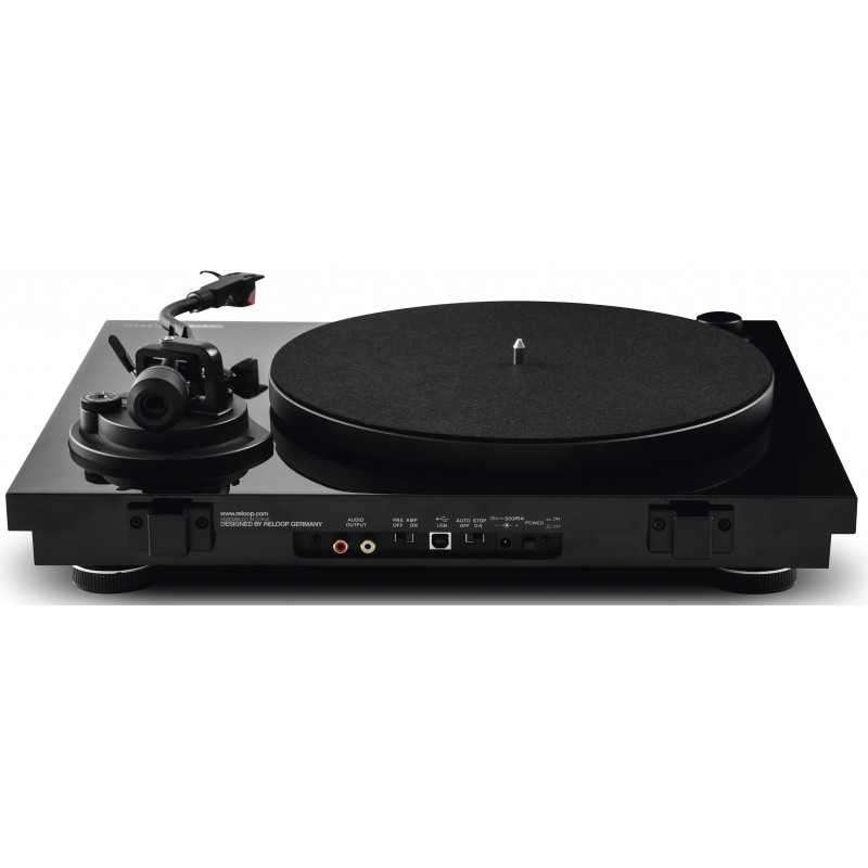 Hi-Fi Reloop Turn 3 S-Shape має S-подібний тонарний дизайн з регульованим циферблаєм для поліпшення відстеження картриджа. Він поставляється з алюмінієвою тарілкою з гумовим демпфіруванням для оптимізованого резонансного управління. Інтегроване управління двигуном за допомогою селектора швидкості дозволяє вибрати три різні швидкості (33 1/3, 45 і 78 об /хв). Гравець з прямим тонаром дизайн Reloop Turn 3.