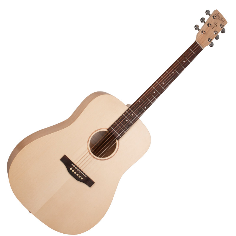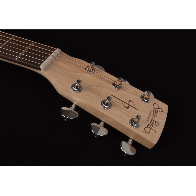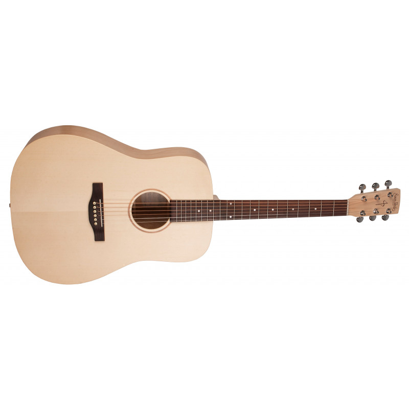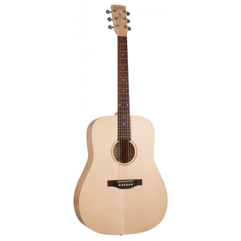 SIMON - TREK NAT SOLID SPRUCE SG - акустична гітара, Верхня палуба: вибір цілої ялини, задня палуба і падалі: 3 шаруваті ламінатні дикі вишні, форма тіла: Дредноут, гриф: прохолодний, підкладка і місток: палісандер, покриття: Напівглянцевий лак (напівглош), поросята: Туск® горіх (імітація кістки) від Graphtech