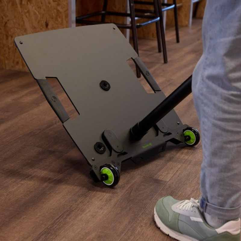 Максимальна вантажопідйомність 40 кг робить її придатною як для легких, так і для важких стійок. Міцна конструкція зі сталі завтовшки 5 мм гарантує тривалий термін служби і надійну роботу під час професійної експлуатації. Нековзні гумові ролики з низьким опором коченню забезпечують плавне і безпечне переміщення.