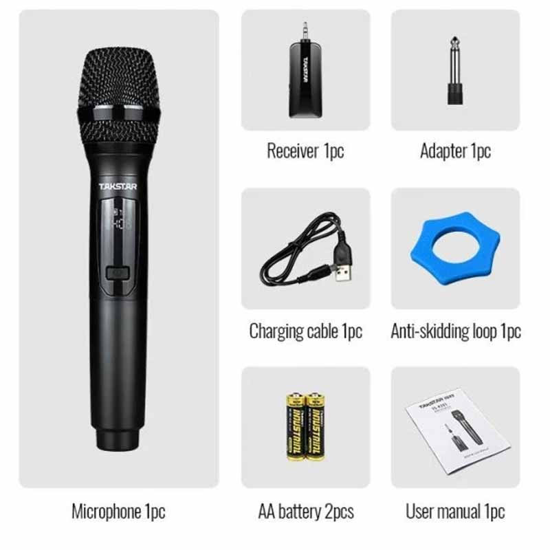 Takstar TS-K201 - побутовий мікрофон для домашнього караоке, озвучення та звукозапису, в комплекті мікрофон і ресивер (приймач). Незважаючи на свою демократичну вартість, пристрої відрізняються непоганим звучанням, функціональною стабільністю та зручністю експлуатації. Крім того, порадував і розширений комплект поставки.