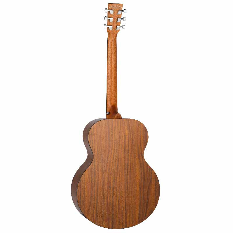 Основу інструмента складає верхня дека зі смереки — деревини, яка відома своїм ясним, чутливим тоном і здатністю з роками розкриватися, набуваючи глибшого, насиченішого звучання. Задня дека й обичайки виготовлені з коа — породи, що вирізняється теплим середнім діапазоном і розкішною текстурою. Завдяки конструкції з HPL-ламінату (використаній для верхньої, задньої дек і обичайок) гітара зберігає як природну красу, так і стабільність до змін вологості та температури — це ідеальне рішення для музикантів, які часто подорожують або виступають на різних сценах.