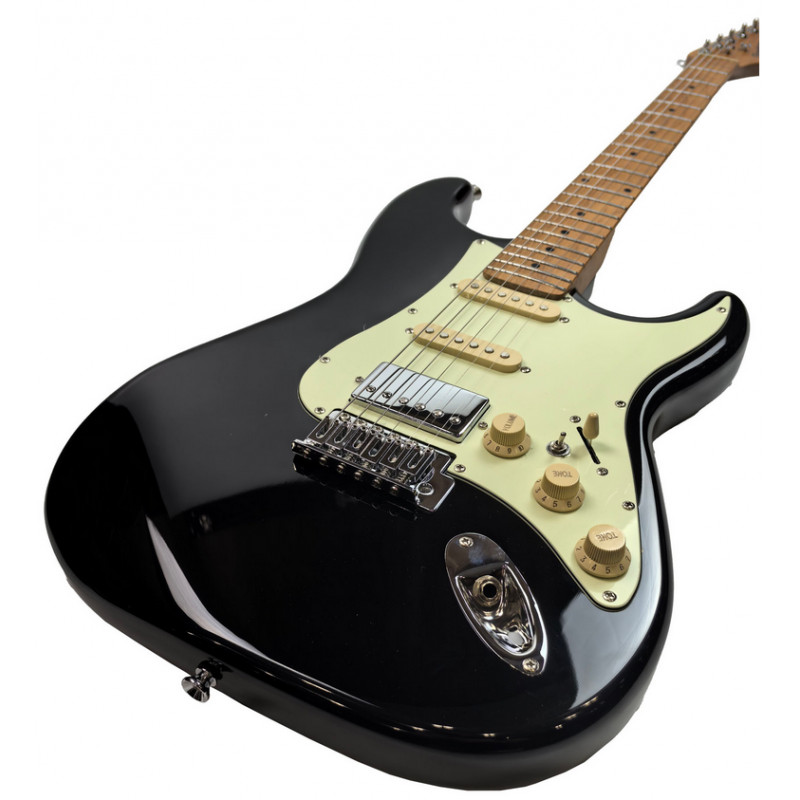 Легкий корпус з тополі забезпечує комфорт під час гри та збалансований тон, а гриф та накладка з термообробленого клена надають стабільності, покращують резонанс та дарують впевненість у кожній ноті. Конфігурація звукознімачів SSH робить інструмент універсальним: від кришталево чистого звучання для джазових імпровізацій до насиченого навантаження для фатальних рифів.