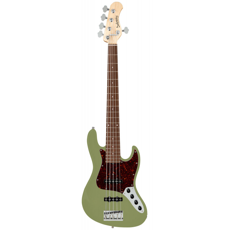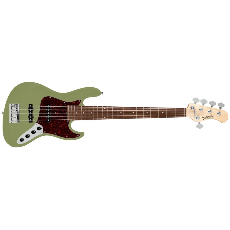 SADOWSKY MetroLine 21-Fret Vintage J/J Bass, Alder, 5-String (Solid Sage Green Metallic Satin) — бас-гітара, американський червоний вільховий корпус, кленовий гриф з пао ферро підкладкою, мензура 34", Міст Садовського, 21 лад, верхні штифти Садовський Just-A-Nut III, звукооператори пасивного Садовського J-Style (зі скасуванням шуму), активний 2-смуговий еквалайзер Садовського з вінтажним тоном управління, об'єм, баланс, Vintage Tone Control (Pshot/P), високий, низький (стек), хромована механіка, Hip