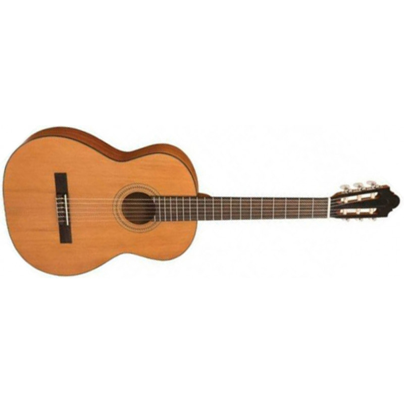 SANTOS MARTINEZ SM350 - класична гітара, студентка, розміром 4/4, серія ESTUDIANTE, верхня палуба - з однієї частини кедрового класу "В", задня палуба і пальто - сапеллі, оксамитовий подвійний КБ, обідки хромовані, струнні (США), покриття матове, натурального кольору.
