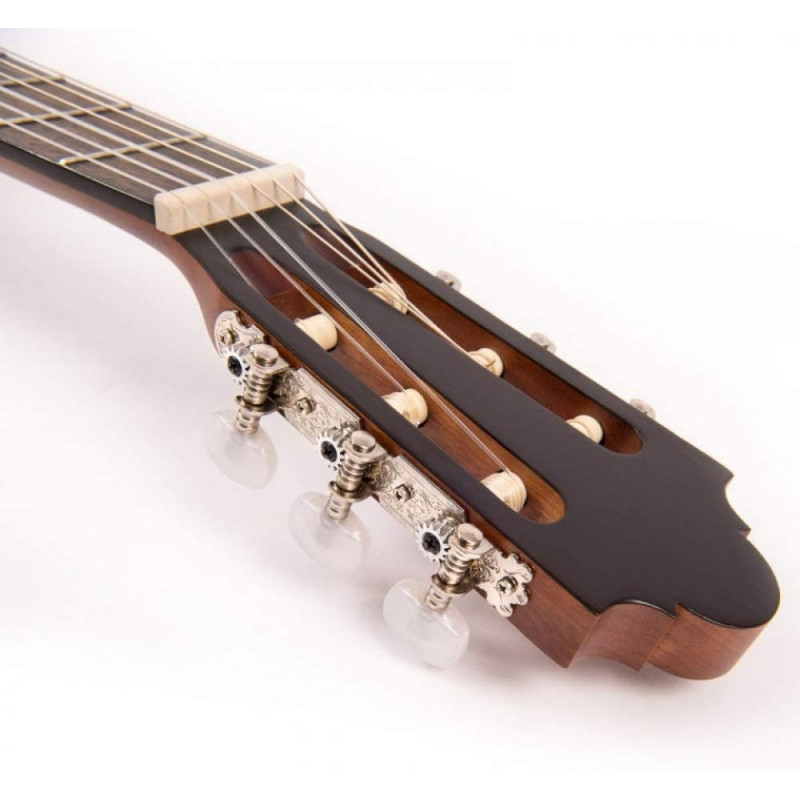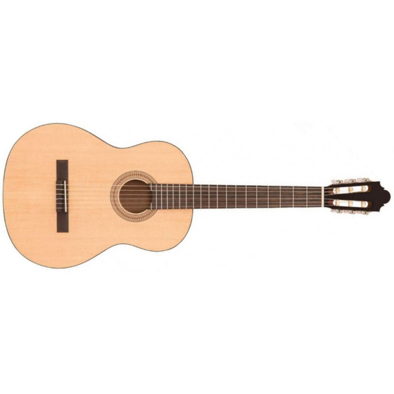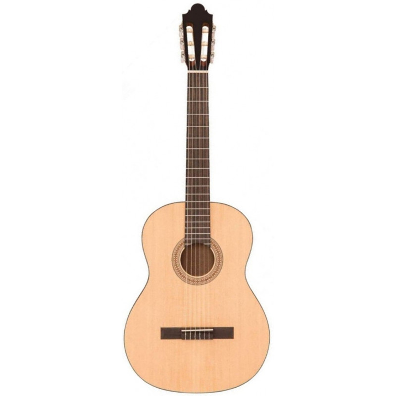 SANTOS MARTINEZ SM440 - класична гітара, студент, відкриті пори, розмір 4/4, серія PRINCIPIANTE, верхня палуба - ялина, задня палуба і собель - сапеллі, оксамит чорний, хром, струни (США), покриття матове, натурального кольору.
